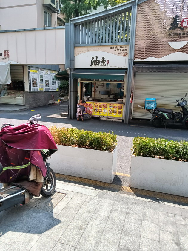 这个卖油条的小帅哥,在空闲的中午,认真仔细地擦亮柜台,他日若见大人,必能飞龙在天。