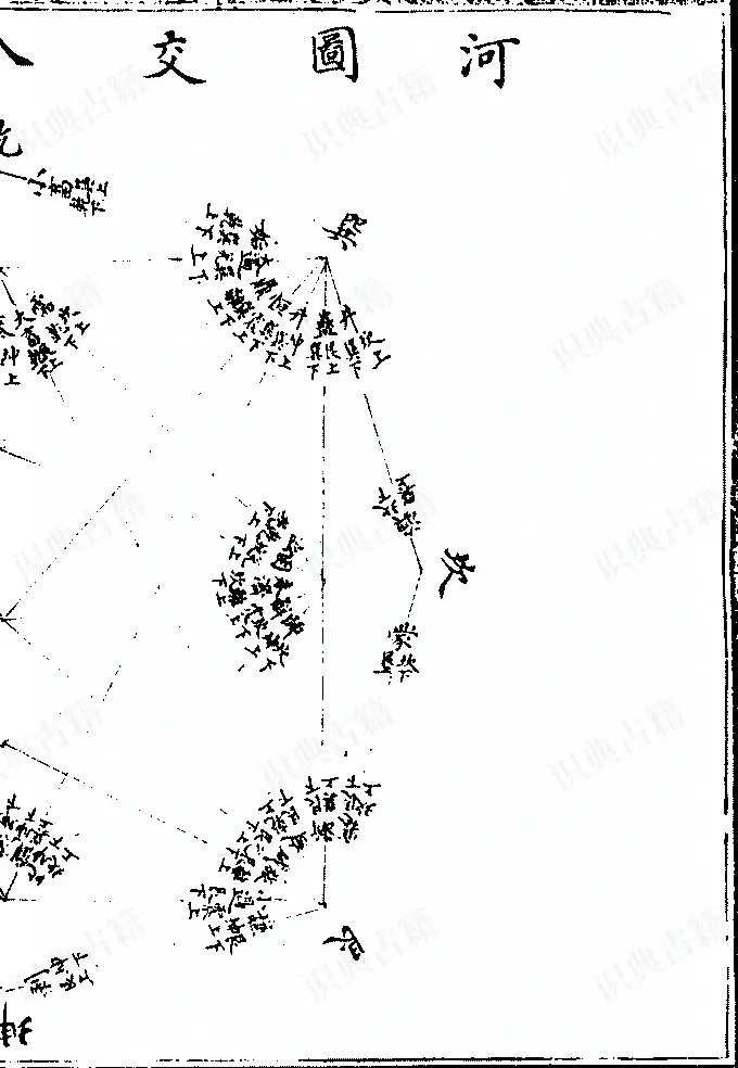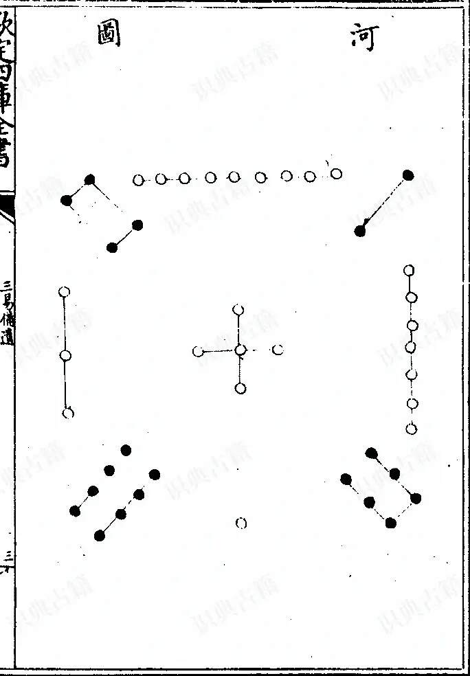 河图本是星图,其用为地理,故在天为象,在地成形也。在天为象乃三垣二十八宿,在地成形则青龙、白虎、朱雀、玄武、明堂。河图之象、之数、之理、至简至易,又深邃无穷。河图上,排列成数阵的黑点和白点,蕴藏着无穷的奥秘。“洛书”之意,其实就是“脉络图”,是表述天地空间变化脉络的图案。洛书,它的内容表达实际上是空间的,包括整个水平空间、二维空间,以及东西南北这个方向。洛书上,纵、横、斜三条线上的三个数字,其和皆等于15。河图洛书是中华文化,阴阳五行术数之源。最早记录在《尚书》之中,其次在《易传》之中,诸子百家多有记述。太极、八卦、周易、六甲、九星、风水、等等皆可追源至此。河图、洛书最有名的出处来自于《易传·系辞》中的“河出图,洛出书,圣人则之”这句话,并据此认为八卦就是根据这二幅图推演而来的。第一次给这两幅图命名的是北宋易学家刘牧,他精研陈抟所传《龙图易》,著书《易数钩隐图》,于是,河图洛书才为世人所知。