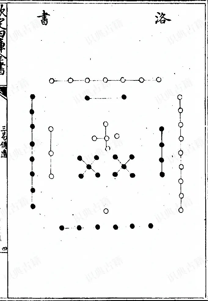河图洛书,皆天之所出,皆圣人之所则,其所以异、所以同者,先儒言之备矣。若夫图之奇数,始于左旋,终于右旋,逆布也;偶数始于右旋,终于左旋,顺布也。书则奇偶同一右旋焉,此其异者然耳。图之奇居四正而五居中,贵阳也;偶居四维而虚其十,贱阴也。书则奇偶得以相配焉,此其异者又然耳。图之一也、三也、七也、九也,其象衡而奇,故阳仪之画则之;至于书,则奇之衡,无以异于偶焉。图之二也、四也、六也、八也,其象纵而偶,故阴仪之画则之;至于书,则偶之衡,无以异于奇焉。此其异者又然耳。其所为同者,图一生水,而六与一为联,与书之一六生成合,旡以异也;图二生火,而七与二为联,与书之二七生成合,无以异也;图三生木,而八与三为联,与书之三八生成合,无以异也;图四生金,而九与四为联,与书之四九生成合,无以异也。帷五生土,图虚其十,与书不同。然土旺四季,图一对九为十,二对八为十,三对七为十,四对六为十,十之体不具,十之用已该,与书之五与十生成合,亦何以异?不特此也,河图之数,奇赢偶乏,洛书之数奇乏偶赢,人帷见不同耳。岂知默相脗合之妙,又当于生成之合者求之。何也?天一、地二、天三、地四、天五,生数也。合之,其为数也十有五。地六、天七、地八、天九、地十,成数也。合之,其为数也四十。图书之周于外者,总其数皆四十,合成数也。图之虚其中,则涵十有五;书之实其中,则具十有五,合生数也。以体分之,则互于中外,各具生成;以数合之,则生数处中,成数处外。于此见生生造化,皆自中起。图书之异也、同也,可得而言矣。
