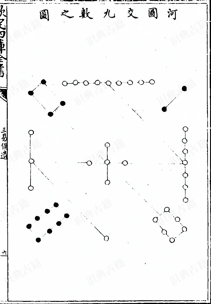 夫子言“易有圣人之道,曰“非天下之至精,其孰能与于此,曰非天下之至变,其孰能与于此,曰非天下之至神,其孰能与于此?观此二图,交以河图,则六十四卦之序皆乾一、兑二、离三、震四、巽五、坎六、艮七、坤八,往者顺,来者逆也;交以洛书,则六十四卦之序皆出震、齐巽、见离、役坤、说兑、战乾、劳坎、成艮也。呜呼!天出图书以示圣人,圣人画卦以法天,非至精、至变、至神,其孰能与于此?九为河图,十为洛书,端可证矣。