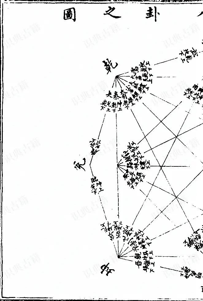 图之数有九,卦之位有八。“乾称父位”,成数之九;“坤称母位,生数之一,一涵九也;震为长男位,成数之八;巽为长女位,生数之二,二涵八也;坎为中男位成数之七,离为中女位生数之三,三涵七也;艮为少男位成数之六,兑为少女位生数之四,四涵六也。五数居中,又所以总诸数也。是故乾统三男居成数之位,坤统三女居生数之位。独阳不成,独阴不生,所以配道也;长幼有序,男女有别,所以明伦也;男女正而家道正,正家而天下定,所以致用也。噫!易岂虚玄云乎哉?