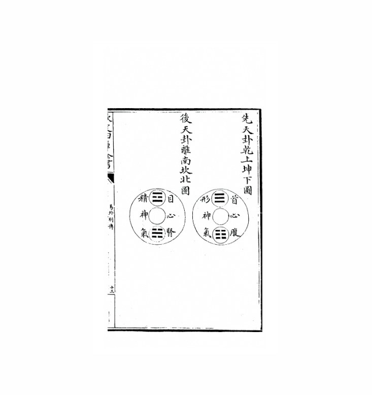 愚谓:人之一身,即先天图也。心居人身之中,犹太极在先天图之中。朱紫阳谓中间空处是也。图自复而始,至坤而终,终始相连如环,故谓之环。环中者,六十四卦环于其外,而太极居其中也。在易为太极,在人为心;人知心为太极,则可以语道矣。